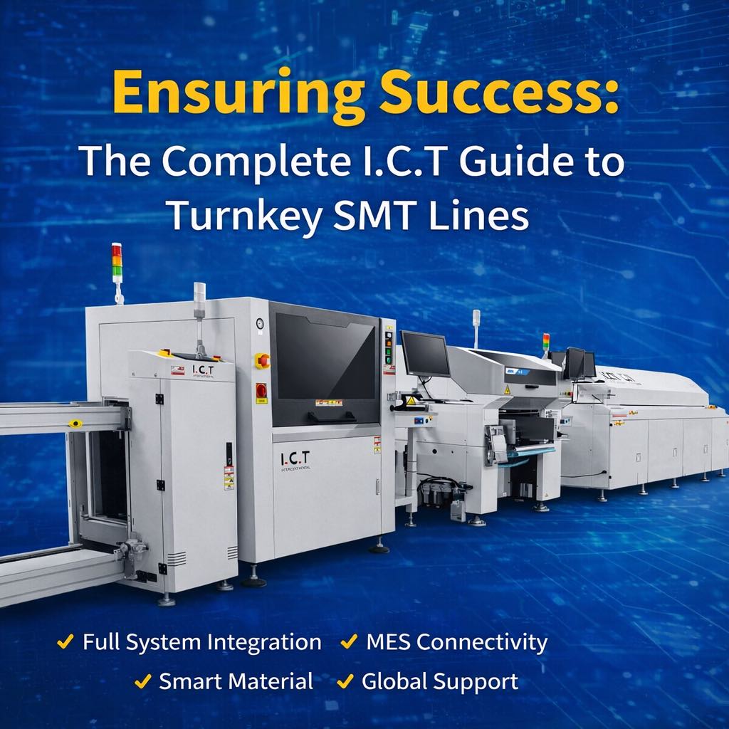 ICT SMT proizvodna linija 'ključ u ruke' kombinira provjerenu opremu, inteligentnu integraciju, profesionalnu izvedbu i stalnu podršku u jedno pouzdano rješenje. Proizvođači dobivaju brže vrijeme izlaska na tržište, manji projektni rizik, veću dugoročnu učinkovitost i fleksibilnost prilagodbe promjenjivim zahtjevima. Rezultat je moderna, konkurentna SMT tvornica izgrađena na čvrstim temeljima.